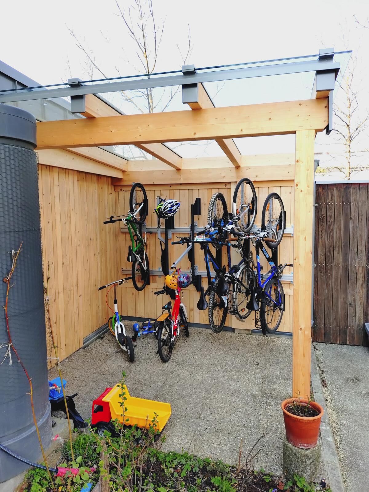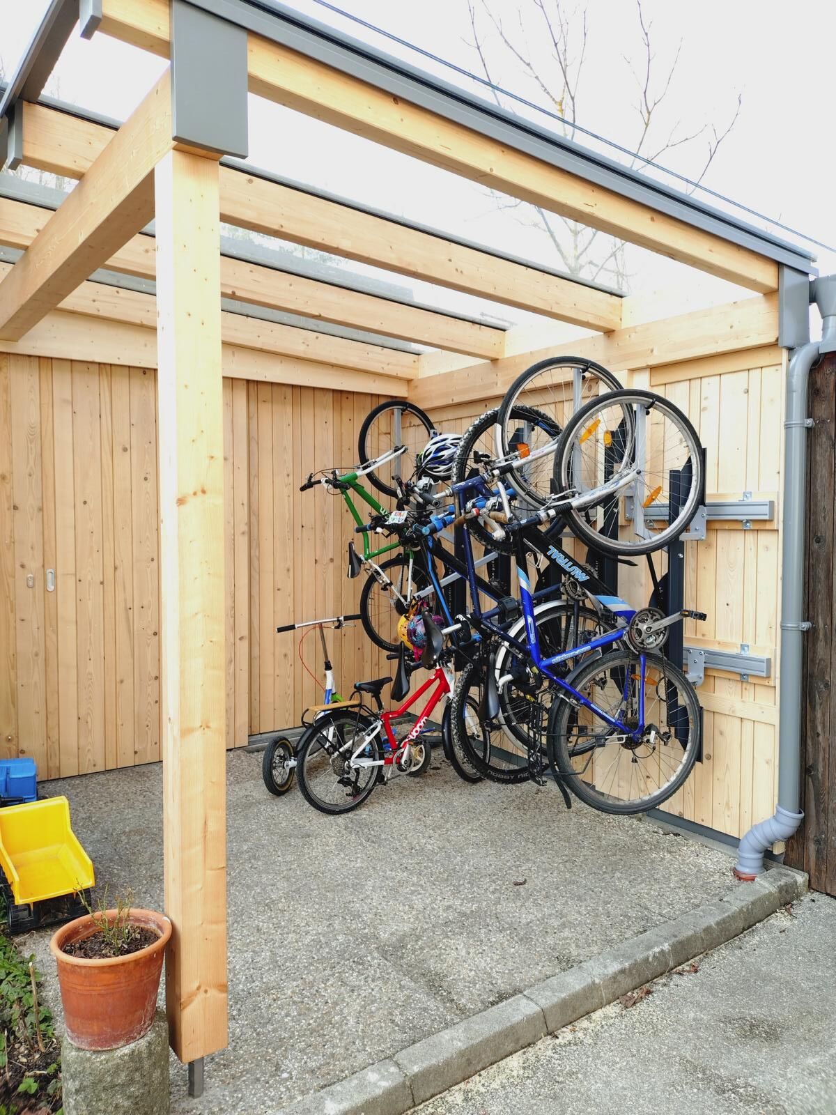 Die 4 Fahrradlifte sind nun montiert. Ich habe Ihnen 2 Bilder informativ angehangen – Das Ergebnis gefällt mir.
