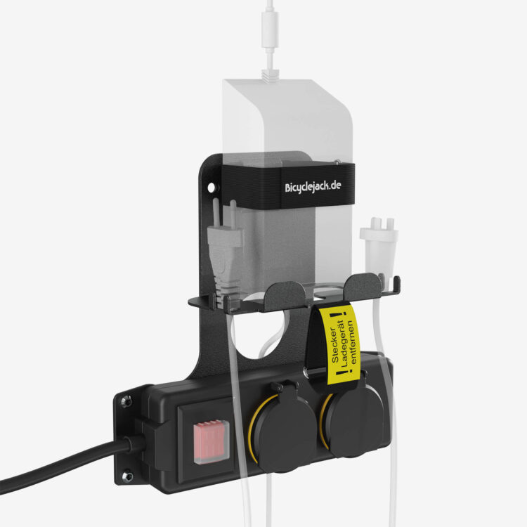 Die Verwendung unserer Wandhalterung für Fahrrad-Ladegeräte bietet mehrere Vorteile: sie spart Platz und hält das Fahrradzubehör organisiert. Darüber hinaus werden Beschädigungen von Ladegeräten durch Herunterfallen oder Verwechslung vermieden.